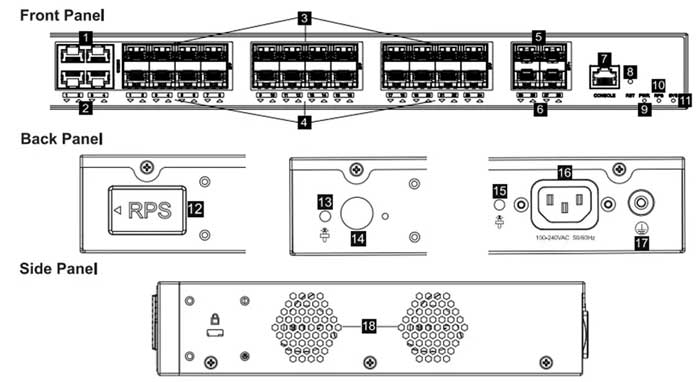 - 4 cổng 10G sfp+, 4 cổng combo sfp/Giga, 20 cổng sfp